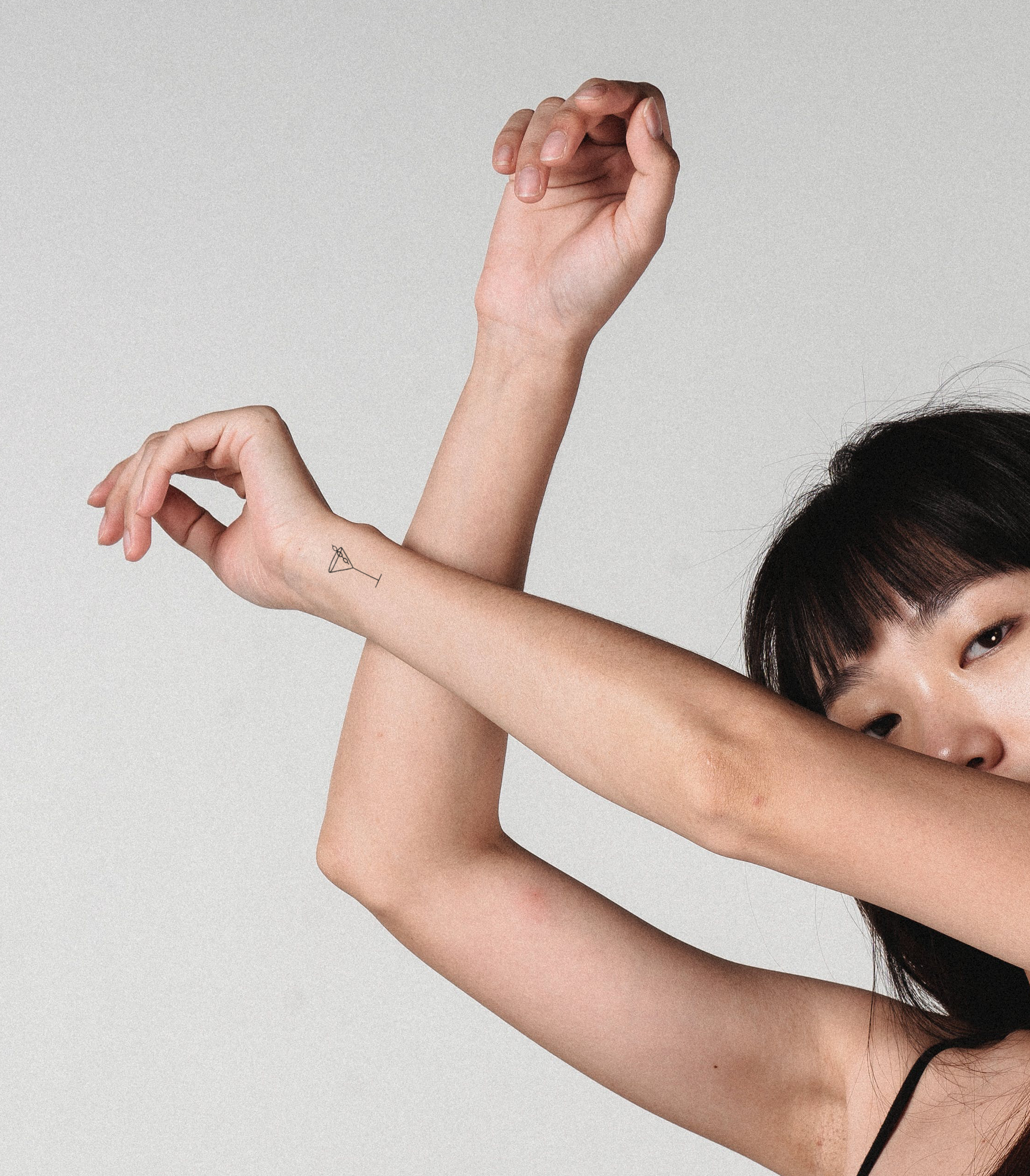 Zartes Fineline-Klebetattoo mit einem Martini Glas. Das minimalistische Motiv eignet sich perfekt für einen feucht fröhlichen Abend mit einer guten Portion Alkohol. (Oder auch nicht). Perfekt für JGA's und Hochzeiten.