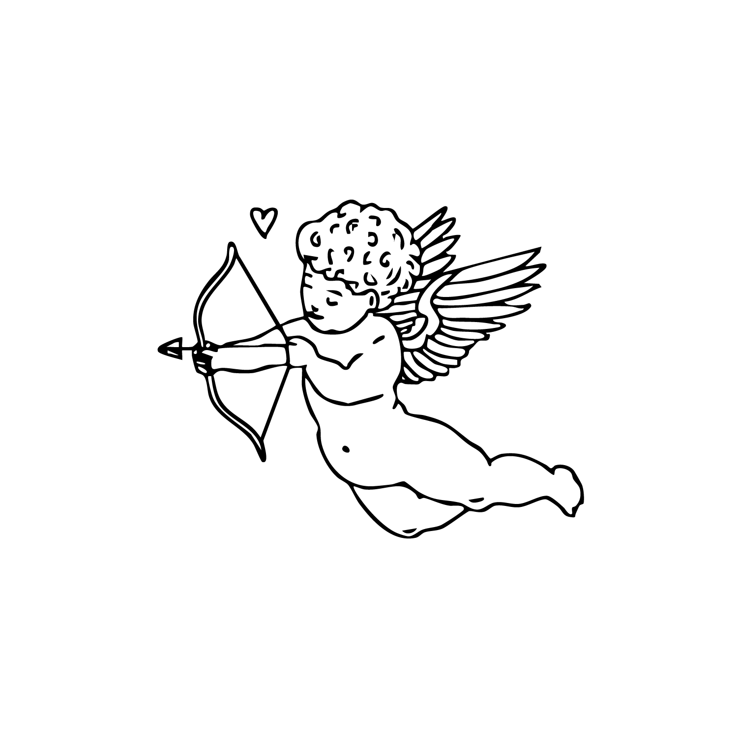 Zartes Engel-Tattoo im feinen Fineline-Stil, der in der Luft einen Pfeil mit kleinen Herzen abschießt – verspielt, romantisch und voller Hochzeitsmagie. Das Amor-inspirierte Motiv steht für Liebe auf den ersten Blick, Schicksal und die Verbindung zweier Herzen.