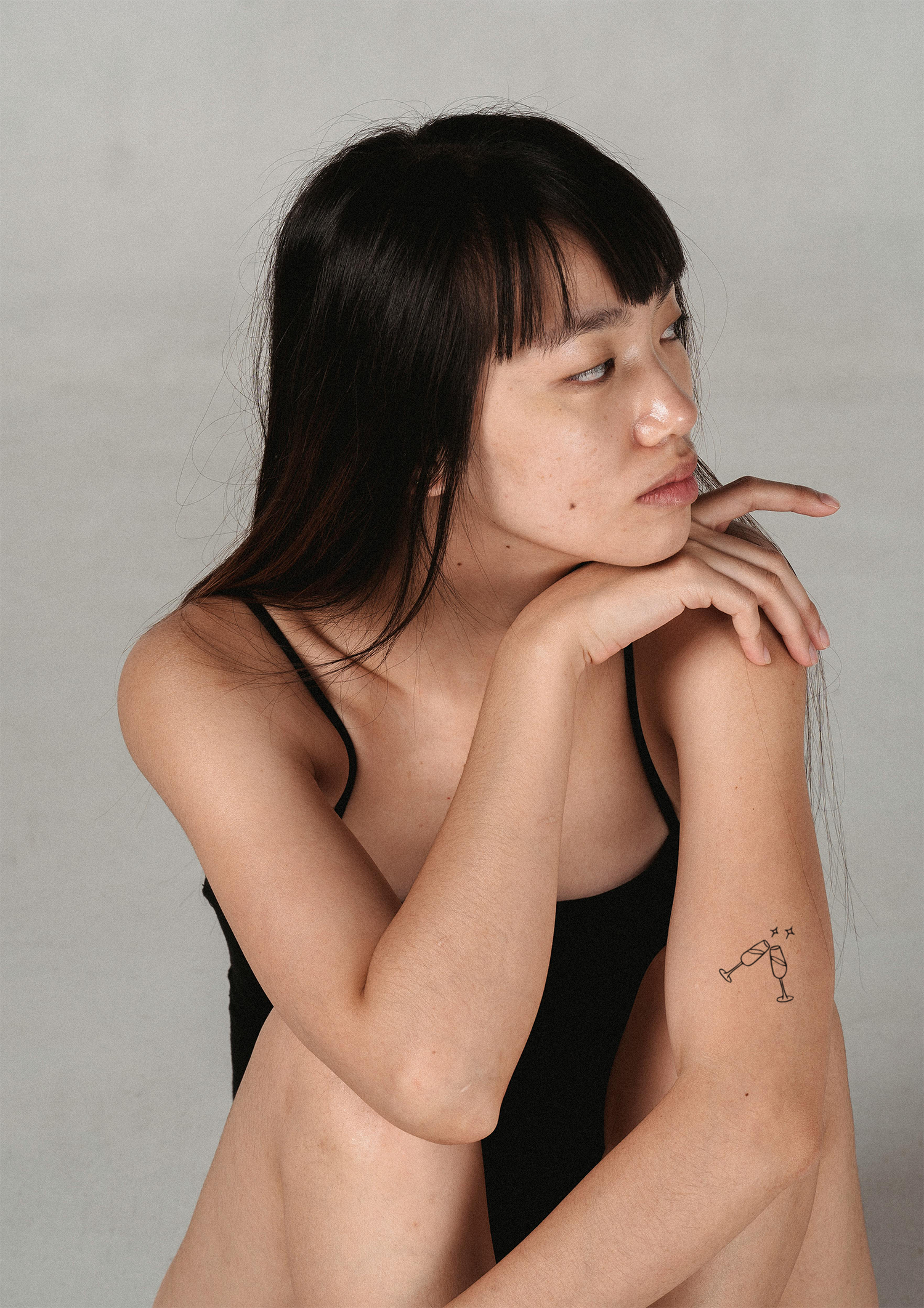 Zartes Sektgläser-Tattoo im feinen Fineline-Stil, bei dem zwei Gläser miteinander anstoßen – festlich, elegant und perfekt für Hochzeiten. Das Motiv steht symbolisch für Anstoßen, Liebe und gemeinsame Feiermomente – ein klassisches Detail für euren großen Tag.
